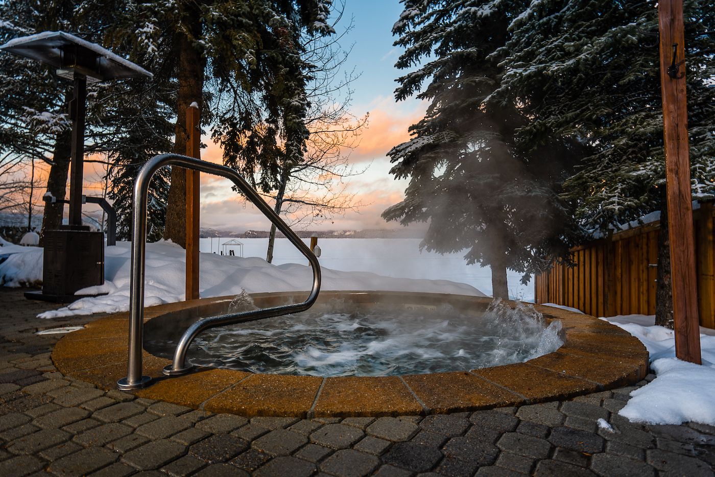 - Outdoor Pool: If you prefer swimming to spa treatments, our outdoor pool and hot tubs are perfect for you. We believe in year-round swimming, even when temperatures drop below freezing. Our heated pool and hot tubs, located at the edge of Payette Lake, provide a breathtaking backdrop for your swim.
